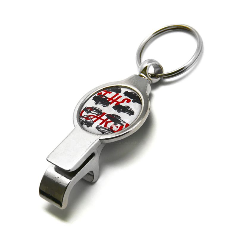 Personalizado Chaveiro promocional com etiqueta resinado e abridor de garrafa com argola.