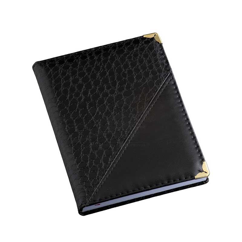 Agenda diária 2024 produzida em couro sintético preto, possui 344 páginas, índice telefônico, calendários, planeamento anual, mapa geográfico do Brasil 4x4 Cores.