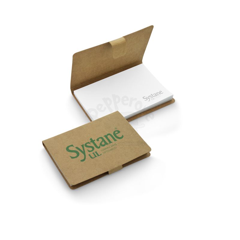 Bloco de anotações personalizado em Kraft com fechamento exclusivo. Contém aproximadamente 80 folhas com logotipo impresso.