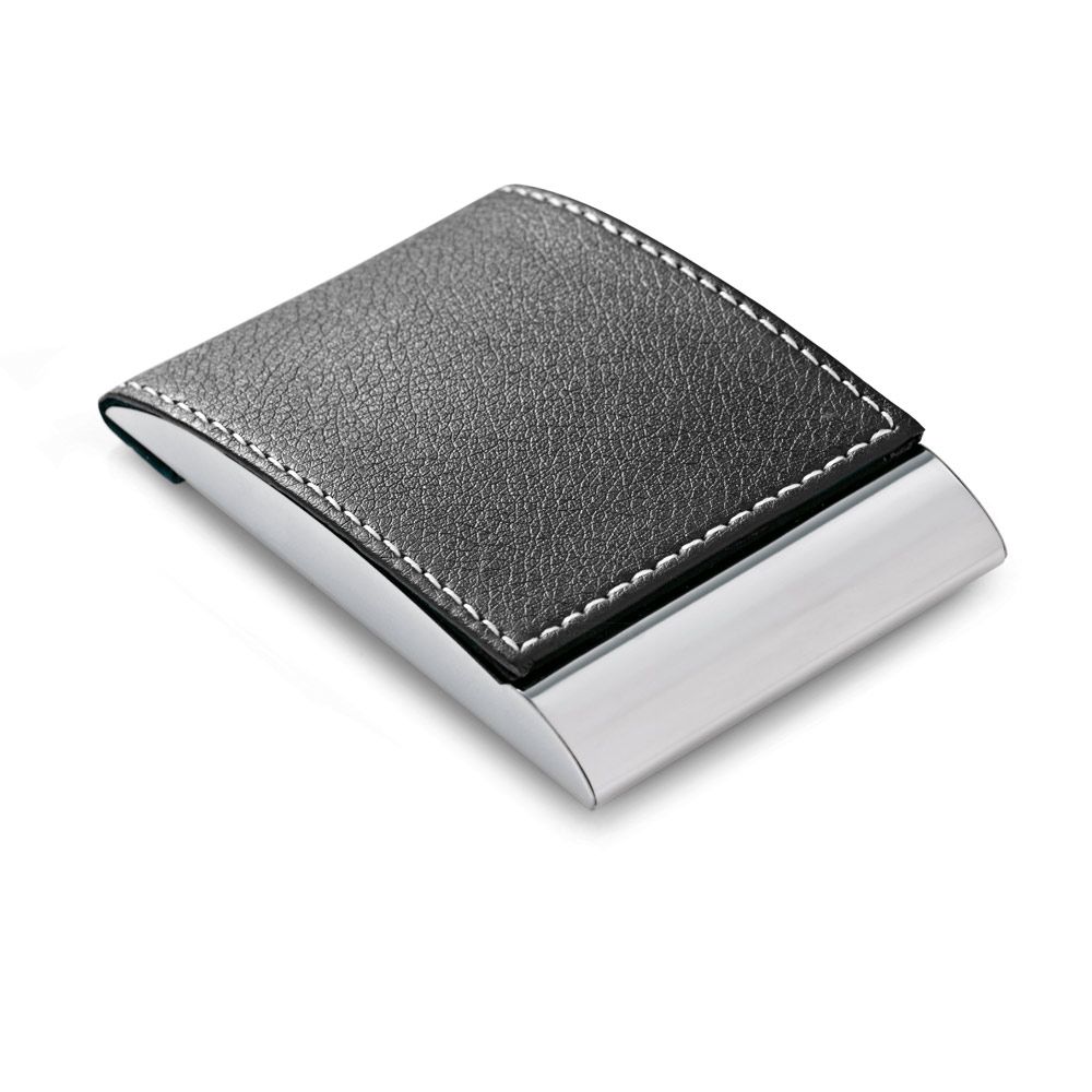 Porta cartão em couro sintético para brindes exclusivos, fornecido em caixa 6,3 x 9,7 x 1,4 cm.