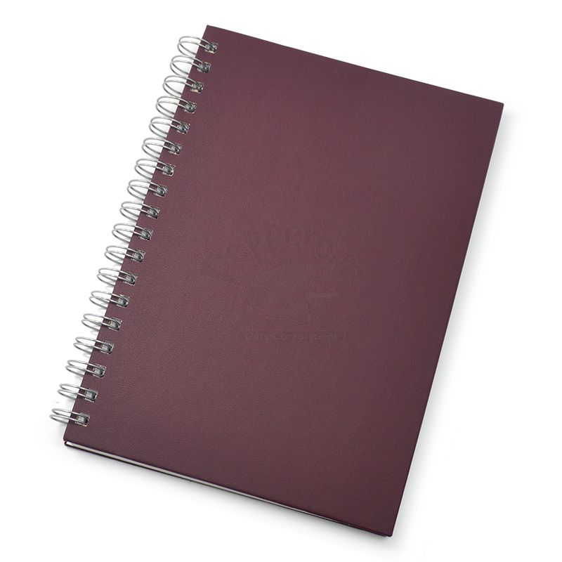 Caderno para brindes personalizados. Possui folha para dados pessoais, calendário, planejamento, marca d'agua nas folhas e capa dura texturizada. Disponível nos tamanhos: 15 x 21 cm, 17 x 24 cm e 21 x 28 cm. Gravações possíveis: Hot Stamping e Baixo Relevo.