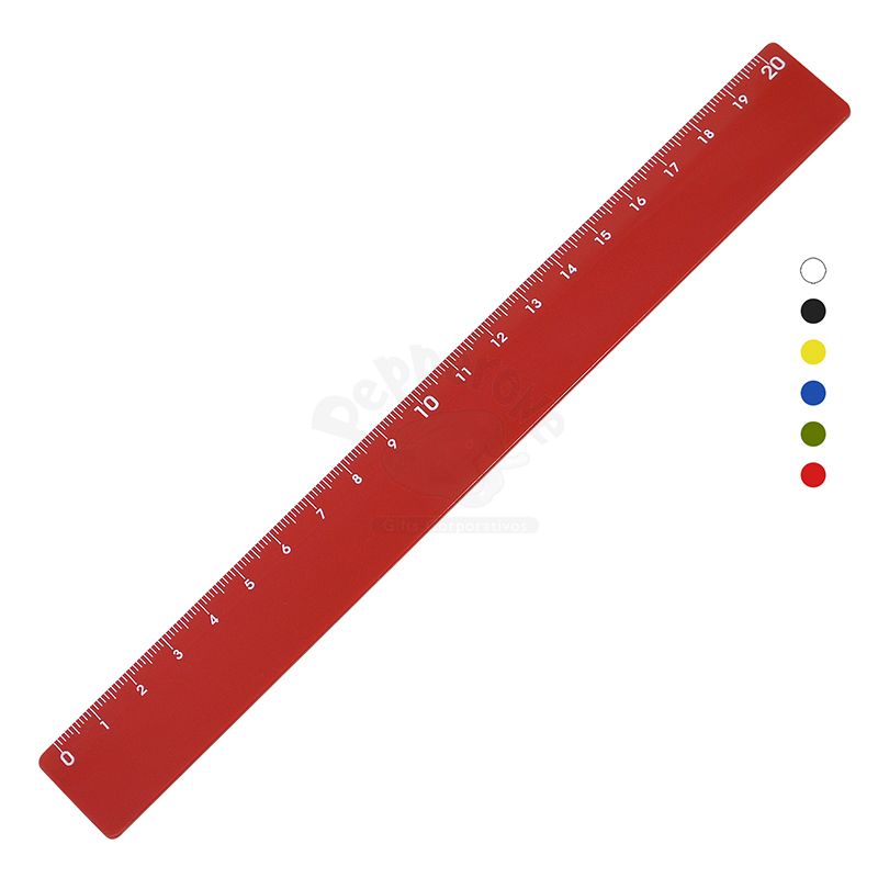 Régua de 20cm. Disponível nas cores: Vermelha, verde, azul, amarelo, branca ou preta.