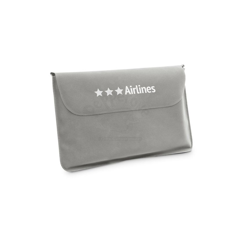 Almofada de pescoço personalizada, produzida em PVC laminado aveludado proporcionando o máximo conforto. Fácil de inflar e compacto ao guardá-lo em seu estojo aveludado. Ideal para brindes em campanhas promocionais feiras e eventos corporativos.