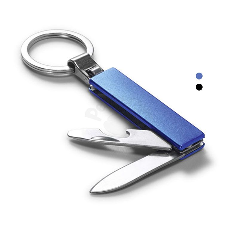 Possui canivete e abridor de garrafas. Disponível nas cores: preto ou azul.