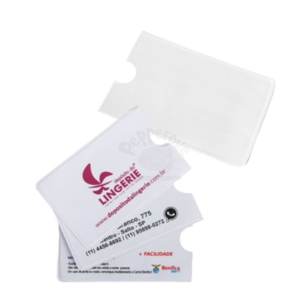 Porta cartões em PVC personalizado para garantir a proteção dos cartões de banco, vale refeições, carteiras de convênio e muitos outros. Possui um lado opaco e o outro transparente para visualização do que há no interior.