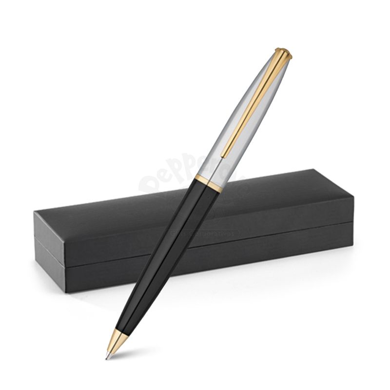 Com estojo personalizado com um toque elegante e luxuoso por conter detalhes na caneta na cor dourado.