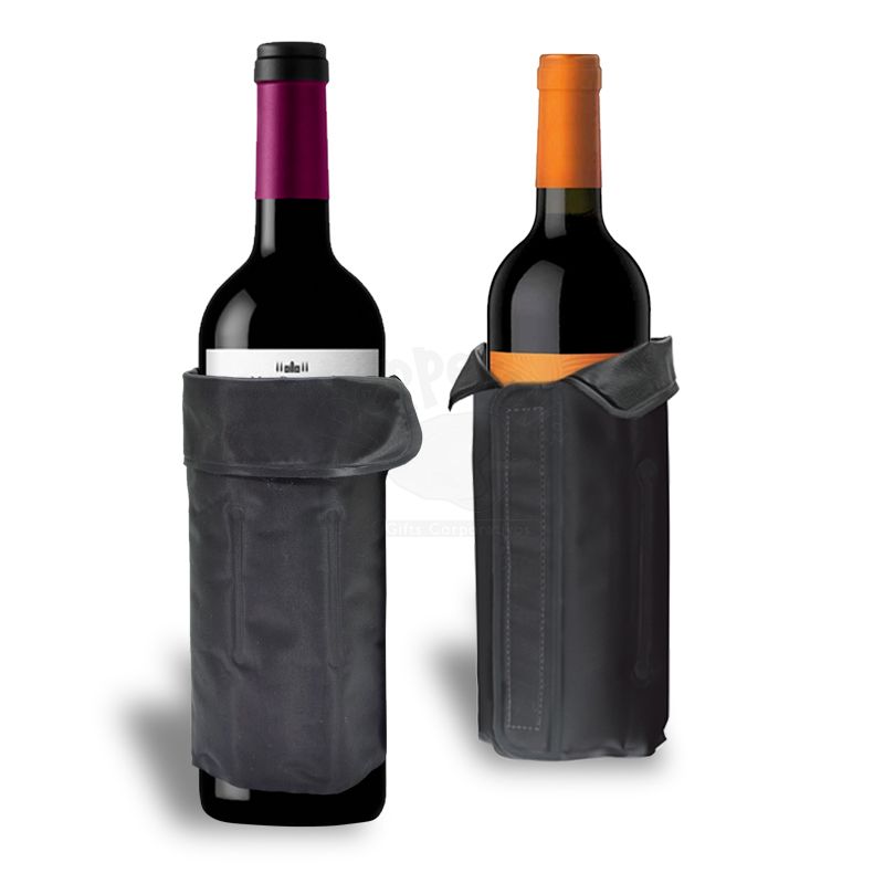 Manta térmica para vinho produzida em nylon 70D ideal para conservar a bebida gelada e saborosa por mais tempo.