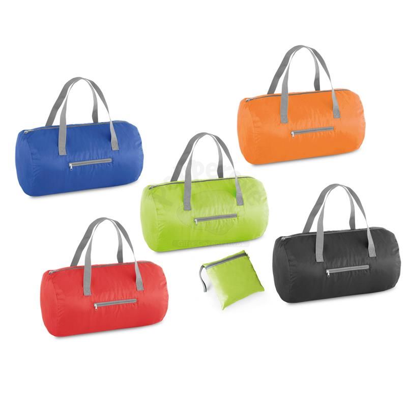Sacola esportiva dobrável produzida em ripstop 210D, Possui bolso frontal, alça de mão e bolso superior com fechamento em zíper. Leve e confortável, após o uso basta dobrar e guardar. Ideal para brindes promocionais e eventos corporativos.