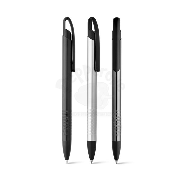 Caneta de Metal Personalizada Caneta de metal com acabamento inferior personalizado, possui clip flexível diferenciado, sistema de acionamento da ponteira por click e uma escrita macia e confortável.