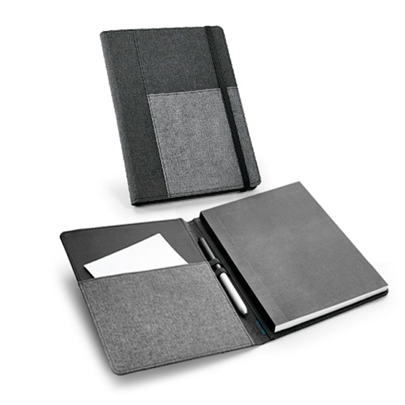Caderno com Compartimento para Smartphone Promocional Caderno Bloco de anotações Caderno com capa personalizada em nylon poliéster, Possui caderno removível com 80 folhas não pautadas, bolso interno, porta caneta e compartimento frontal para smartphone. Ideal para brindes promocionais e eventos corporativos. Smartphone e caneta não acompanha o produto. embalagem de non-woven inclusa no produto.