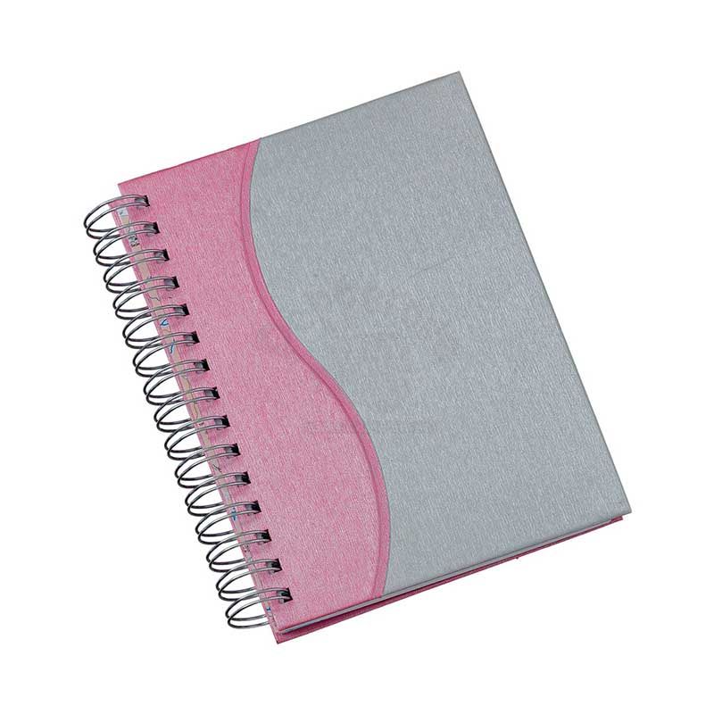 Agenda diaria personalizada produzida em capa dura Percalux efeito metalizado com Wiro-o duplo em metal. Possui miolo 2x2 em cores, 344 páginas em Off-set 63g, mapa do Brasil e mapa mundial 4x4 em cores, índice telefônico, planejamento, calendário 2025/2026 e dados pessoais.