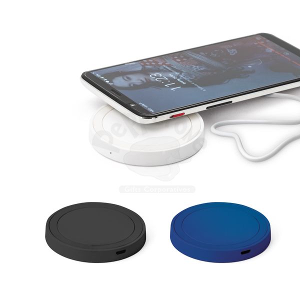 Carregador wireless fast. ABS e silicone. Com entrada 5V/2A e 9V/1.67A e potência de carregamento 5W, 7.5W e 10W. Incluso cabo USB/micro USB para carregar. Compatível com smartphones com tecnologia de carregamento sem fios. Fornecido em caixa presente. ø69 x 10 mm