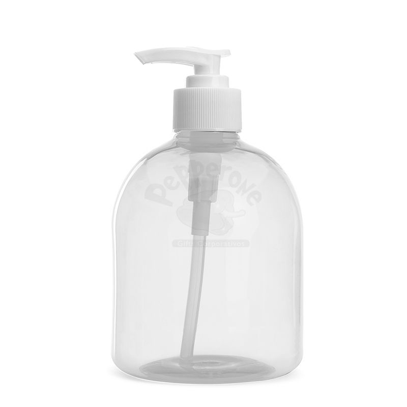 Frasco plástico personalizado com capacidade para 500ml que pode ser usado com álcool em gel ou sabonete líquido. Possui tampa rosqueável com válvula pump e trava de segurança. Basta pressionar e girar a parte superior para travar o produto. Ideal para brindes corporativos e eventos promocionais. Sabonete líquido não acompanham o frasco.