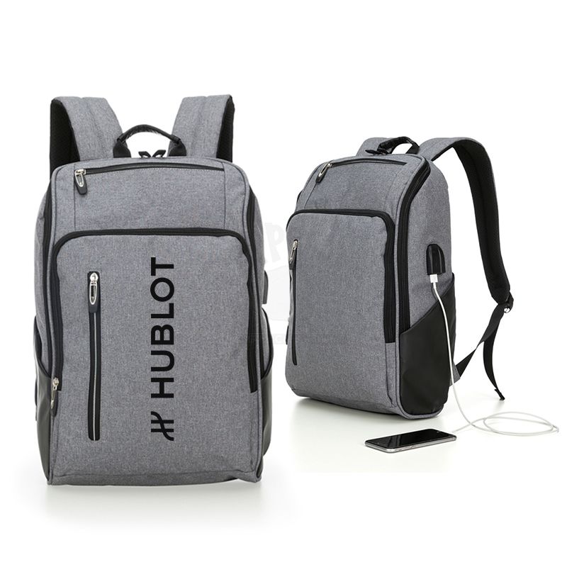 Mochila para notebook personalizada com compartimento interno com trava elástica com velcro para notebook de até 15" polegadas. Possui 2 bolsos laterais em couro sintético, 3 bolsos frontais ambos com fechamento por zíper, bolso frontal com compartimento para objetos pessoais e canetas, alça de mão, alça de ombro reguláveis / almofadadas e costas com acabamento em tecido respirável almofadado para melhor conforto além de possuir alça elástica para acoplar em malas de viagem que possuam alças retráteis. Possui entrada lateral via USB de carregamento para smartphones e saída para fone de ouvido P2 (não incluso) Objetos decorativos não acompanham o produto. Obs: Para carregar smartphones através da entrada USB é necessário o uso de Powerbank internamente(não incluso).