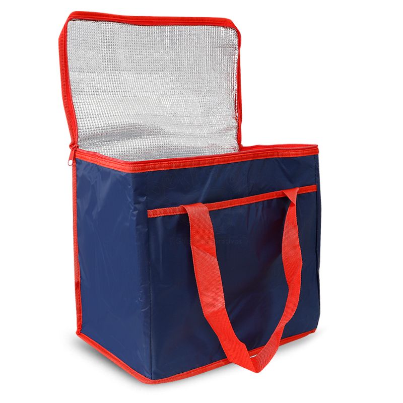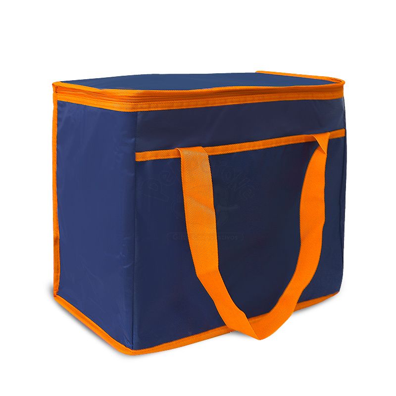 Bolsa térmica personalizada produzida em poliéster 420D com capacidade de 36 litros. Possui área interna com revestimento térmico ideal para manter / conservar a temperatura dos alimentos e bebidas por mais tempo, bolso frontal externo, tampa com fechamento por zíper duplo e alças de mãos para transporte. Ideal para brindes promocionais e eventos corporativos. Imagem ilustrativa.
