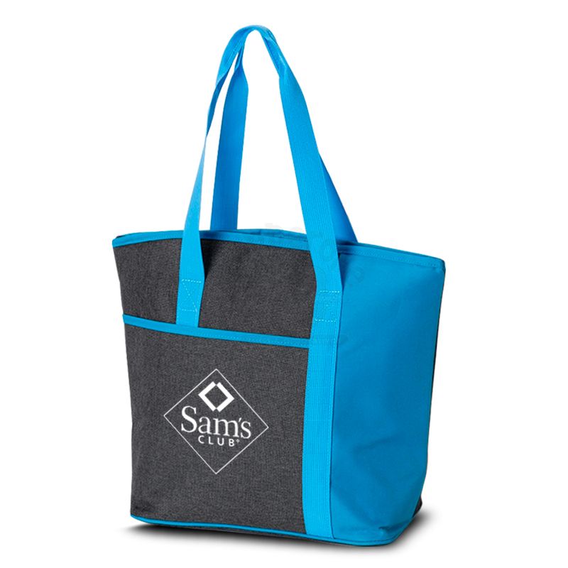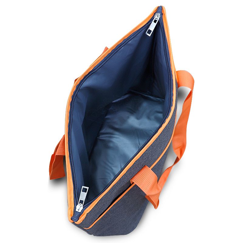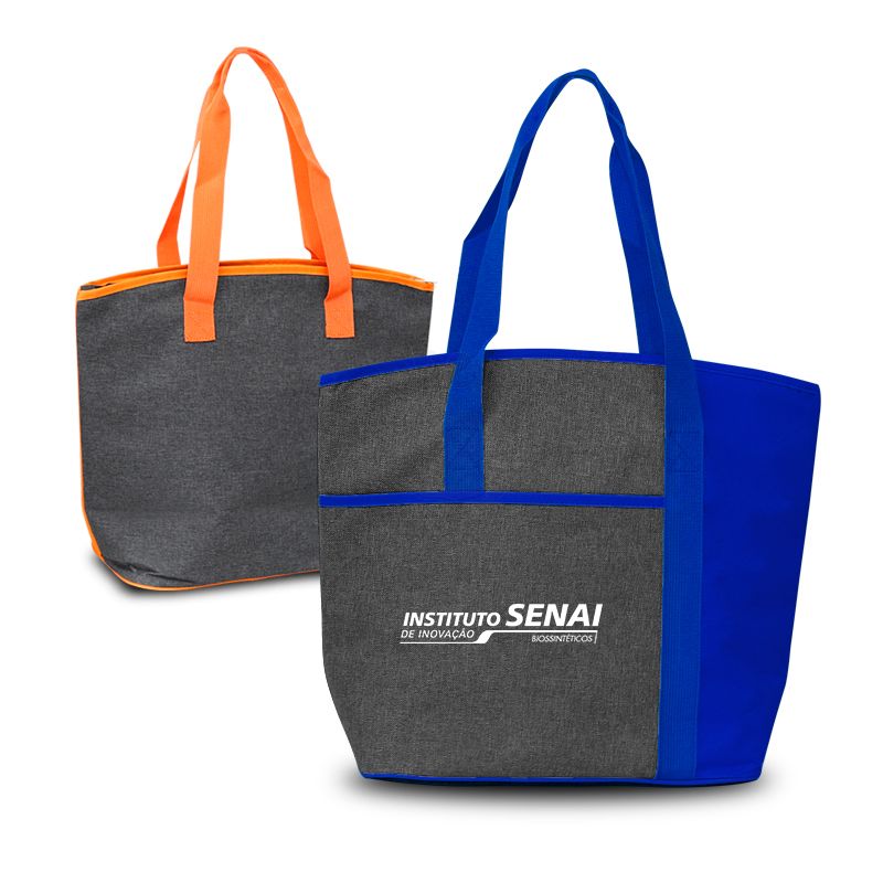 Bolsa térmica personalizada produzida em poliéster 900D+300D com capacidade de 15 litros, Possui área interna com revestimento PEVA, Bolso principal com fechamento por zíper de metal duplo, bolso frontal externo e alças de mãos para transporte. Ideal para brindes promocionais e eventos corporativos
