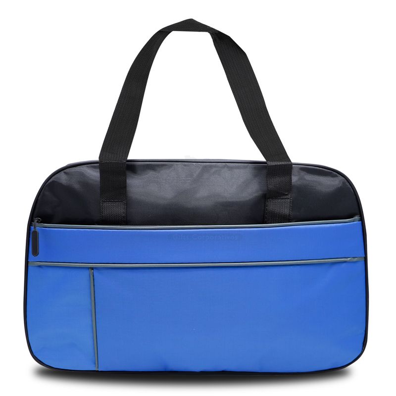 Bolsa mala de viagem esportiva personalizada produzida em nylon, possui bolso principal com fechamento por zíper, alça de mão, alça de ombro removível com engate rápido de metal, acabamento frontal em vivo reforçado, zíperes com puxadores emborrachados, pequeno bolso interno para documentos/chaves, amplo espaço interno e bolso frontal com fechamento por zíper. Ideal para brindes promocionais e eventos corporativos.