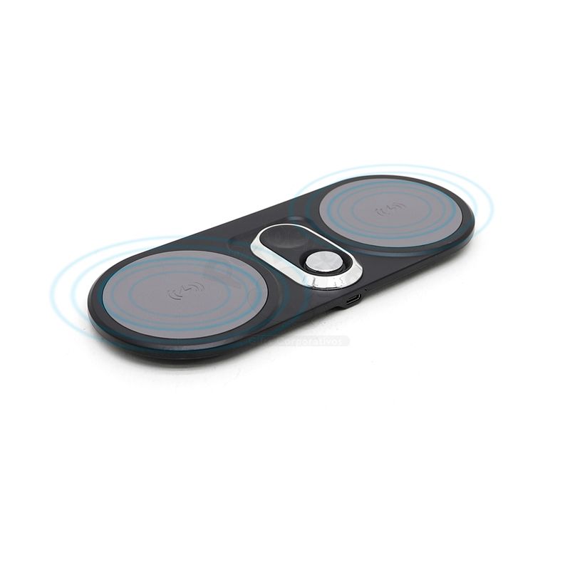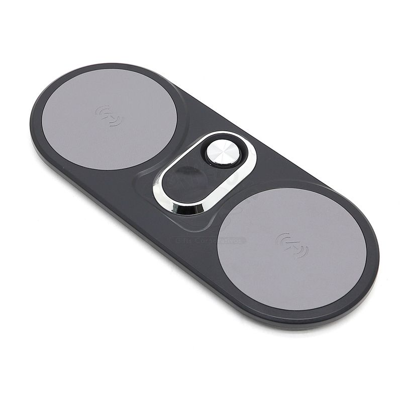 Carregador wireless personalizado produzido em ABS com design fino e inovador. Possui sistema de carregamento sem fio wireless para smartphones com tecnologia de WPC Qi1.2 compatível com Apple Watch relógio Qi com carregamento sem fio. Carga rápida Apple 7.5W e Samsung 10W, conecte os carregadores QC2.0 e QC3.0 com protocolo padrão QC. O telefone de carga não rápida funciona no modo QI 5W no terminal de carregamento sem fio lateral do relógio e suporta apenas o carregador sem fio iWatch de três e duas gerações de relógios com potência padrão de 2W. Compatível com smartphones Apple, iPhoneX / IPhone8 Plus / iPhone8, Samsung: Note8 / S8 Plus / S8 / S7 Edge e Qualquer um dos telefones com protocolo Qi para Apple watch Watch3 e IWatch 2. Imagem Ilustrativa. Ideal para brindes promocionais e eventos corporativos.