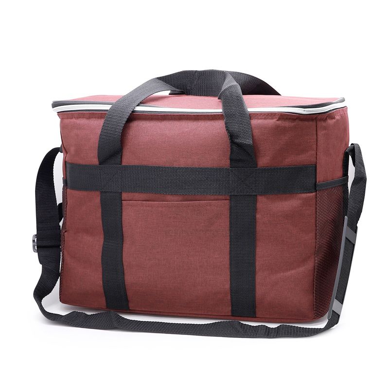 Bolsa térmica personalizada produzida em nylon. Possui área interna com revestimento térmico ideal para manter / conservar a temperatura dos alimentos e bebidas por mais tempo, bolso frontal externo, tampa com fechamento por zíper duplo, alça ajustável de ombro e alça de mão para transporte. Ideal para brindes promocionais e eventos