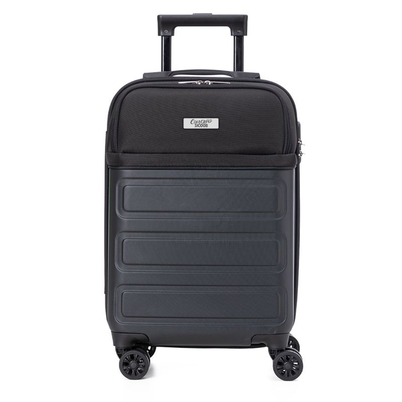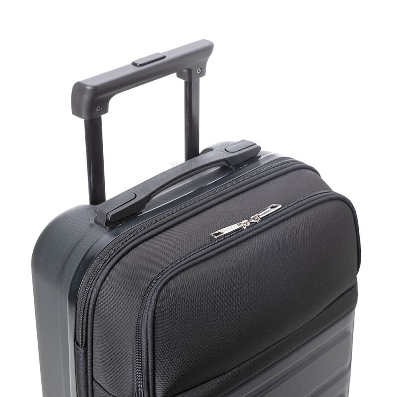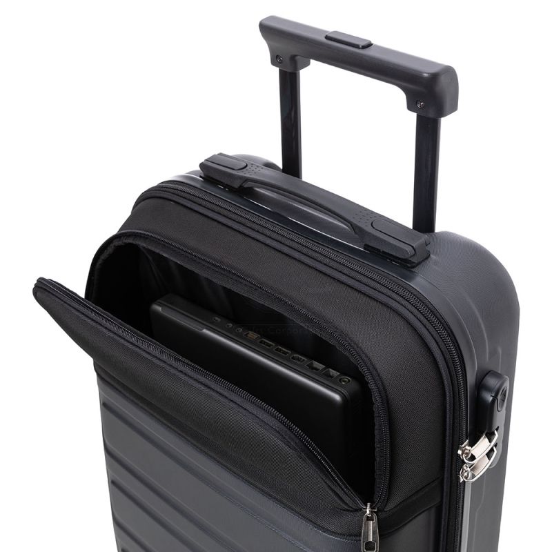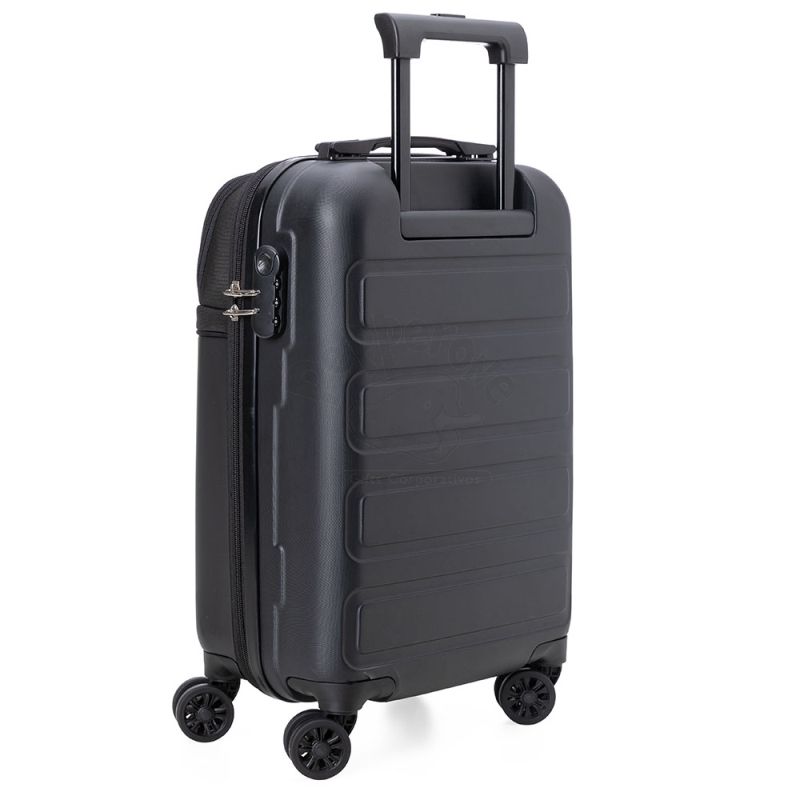 Mala de viagem personalizada produzida em ABS (Estireno de acrilonitrilo e butadieno) e parte de tecido sintético. Possui abertura frontal com ziper duplo para acesso ao interior da mala,1 bolso frontal com fechamento por zíper, 1 compartimento interno com bolso em tela, 1 tira elástica com trava para melhor organização, 2 forros internos em poliéster com fechamento por zíper, cursores em metal, sistema de carrinho em aço; alça de mão superior e lateral em ABS com acabamento interno emborrachado, alça com trava de segurança expansível em 45cm, trava de segurança e 4 rodas com giro de 360º. Ideal para viagens de curta e longa duração com praticidade e elegância. *Imagem ilustrativa.