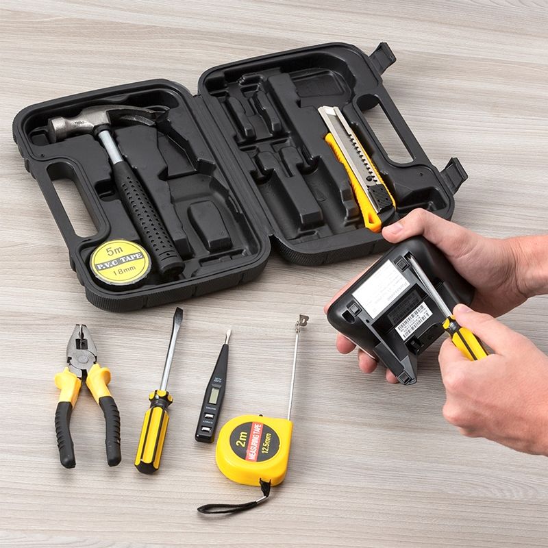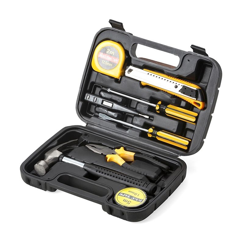 Kit ferramentas com estojo personalizado e 8 peças. Possui * 1 Alicate * 1 Chave de fenda *1 Chave Philips * 1 Estilete * 1 Trena de 2 metros * 1 fita isolante, 1 chave medidor de voltagem e 1 Martelo. Ideal para pequenos reparos e serviços de manutenção. Ótima opção para brindes promocionais e ventos corporativos. Kit Ferramenta 8 Peças Personalizado