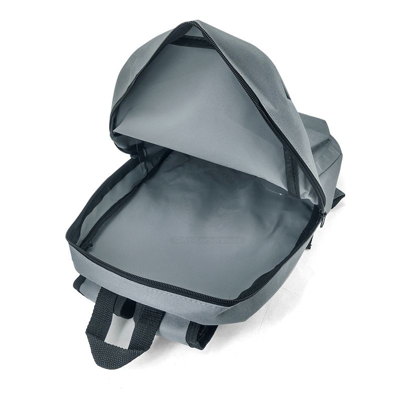Mochila personalizada produzida em nylon sintético com acabamento emborrachado. Possui bolso frontal, bolso principal com amplo espaço interno ambos com fechamento por zíper, alças de costas ajustáveis e alça de mão em nylon. Ideal para brindes promocionais e eventos corporativos.