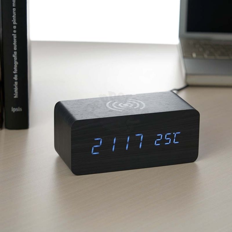 Relógio de Mesa Digital com Carregador por Indução Personalizado