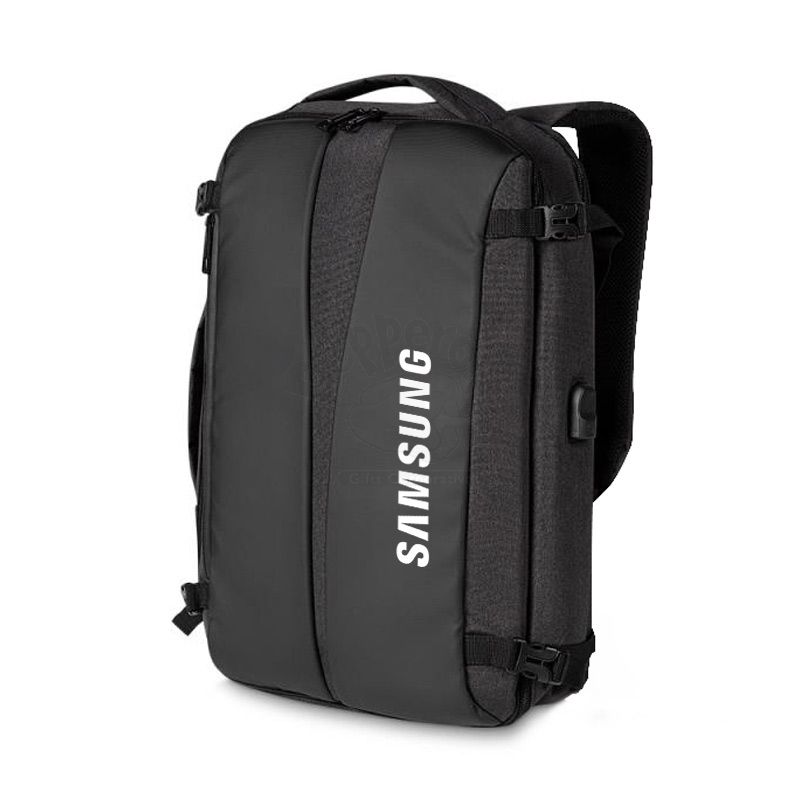 Mochila e Pasta para notebook produzida em tecido poliéster. Possui, parte externa: Conector USB na lateral; Alça de mão e ombro acolchoadas; Bolso para guardar a alça de ombro; Engate para mala de viagem e compartimento para notebook de até 17 polegadas. Ideal para brindes promocionais e eventos corporativos. Imagem ilustrativa. Obs: Compatível com tamanho de notebook máximo de 40 x 28 Cm.
