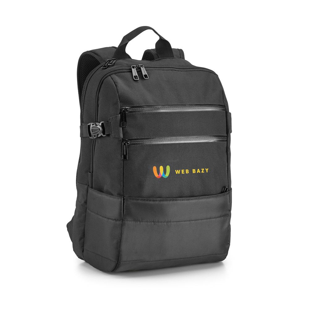 Mochila para notebook em 840D jacquard e 300D com 2 compartimentos. Compartimento posterior forrado e almofadado, com 2 divisórias almofadadas para notebook até 15.6'' e tablet 10.5''. Compartimento frontal forrado, com diversos bolsos interiores. A mochila tem 3 bolsos frontais e 2 bolsos laterais. Parte posterior almofadada, com sistema de apoio acolchoado para as costas e alças almofadadas. Ideal para brindes promocionais e eventos corporativos. Imagem ilustrativa.