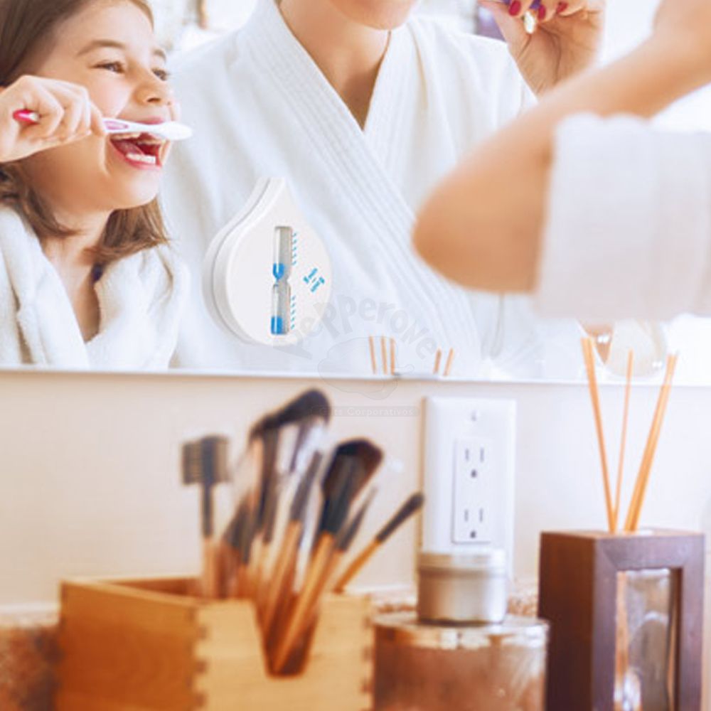 Ampulheta temporizador de banho personalizada produzida em ABS com ventosa que permite a rotação do produto quando colocado na parede. Ajuda a controlar o tempo no banho e economizar água. Incluso temporizador de 5 minutos. Imagem ilustrativa.