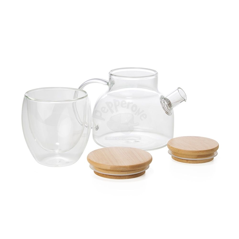 Conjunto de Bule de vidro de borossilicato* com infusor de aço inoxidável e tampa de Bambu com capacidade 850ml, e copo de vidro borossilicato* com parede dupla e tampa de Bambu, com capacidade 350ml. Possui design moderno elegante que oferece charme ao servir a mesa, sendo companheiro perfeito para aqueles que apreciam um bom chá. Fácil de lavar e armazenar.