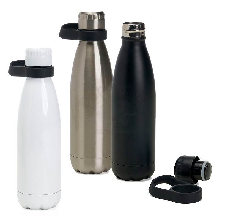 Garrafa Térmica em aço inoxidável, com parede dupla e capacidade de 510ml. Tampa com vedação a prova de vazamento. Acompanha alça em silicone para maior facilidade no transporte, design moderno e elegante.