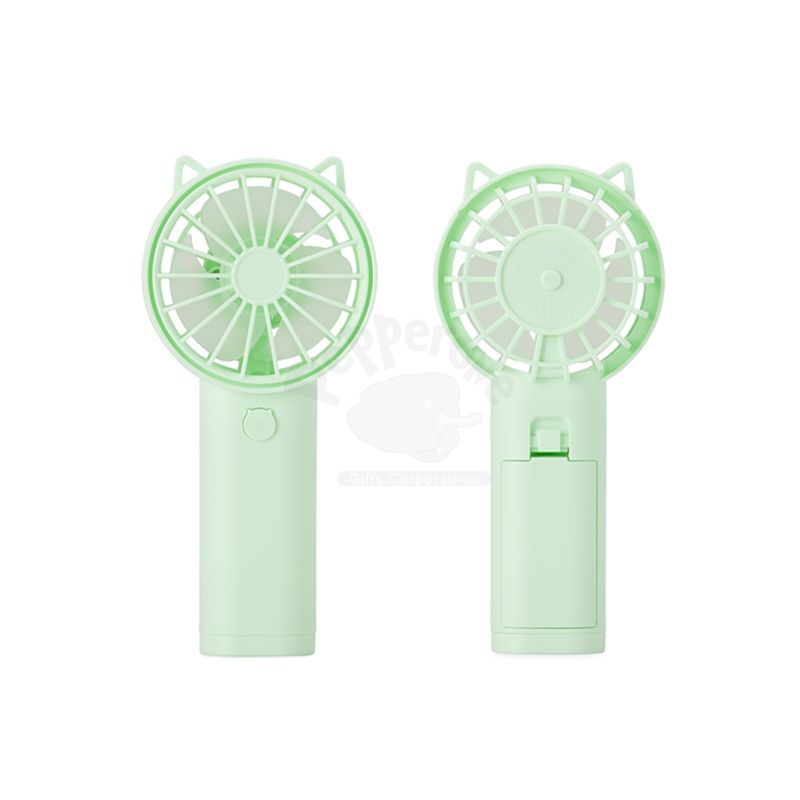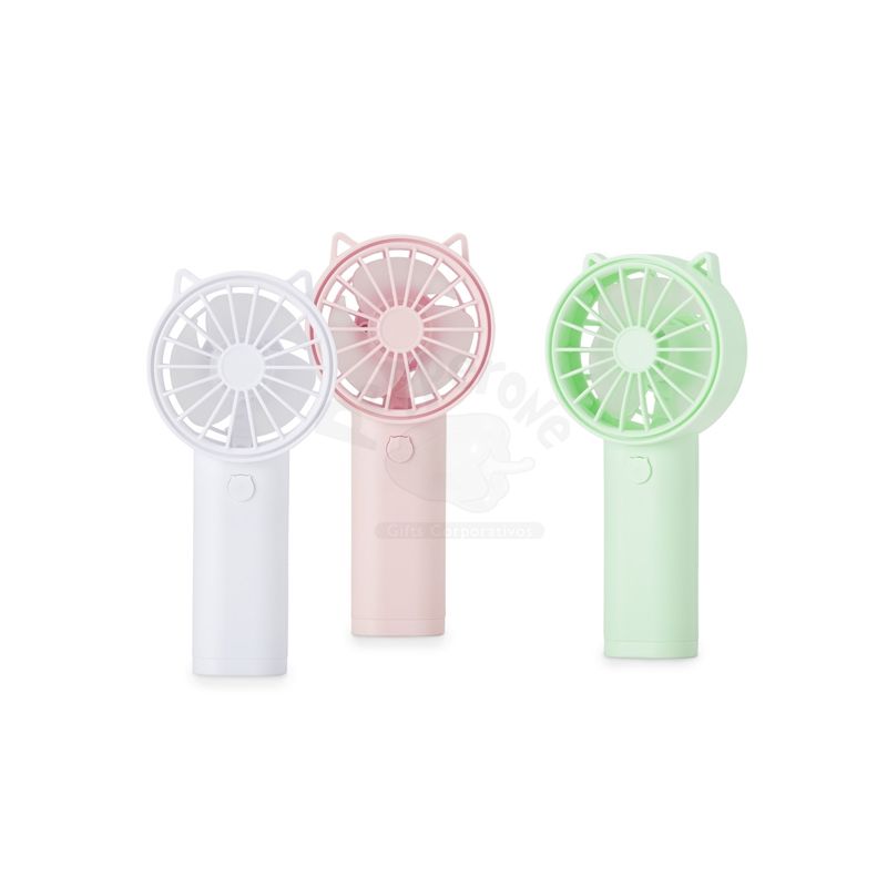 Mini ventilador plástico com botão de acionamento. Para o funcionamento, utiliza-se duas pilhas AAA (não acompanha). Ideal para sua campanha de endomarketing ou premiação de colaboradores.