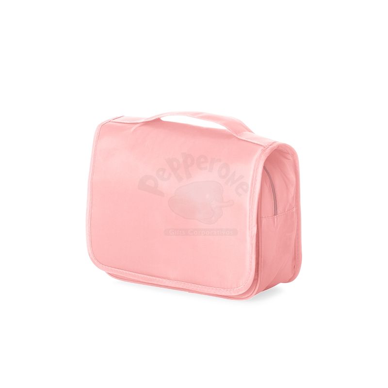 Necessaire organizadora personalizada. Tecido Sarja, abertura frontal por velcro e alça superior, parte interna com gancho plástico; bolso interno superior de pvc e bolso de tela superior, ambos de zíper; dois bolsos inferiores de zíper, sendo o primeiro com detalhe superior em tela e 3 divisões internas com 3 elásticos para fixação, segundo bolso na parte frontal interna; parte traseira possui um bolso externo. Perfeita para lhe acompanhar em viagens e até mesmo transportar seus itens pessoais do dia a dia com organização e praticidade.