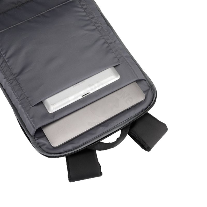 Mochila Premium, adequada para viagens de negócios, feito de tecido de poliéster, alças de ombro acolchoadas, aceita notebook de até 15,6”, porta USB na lateral, engate para mala de viagem, com dois bolsos nas laterais.