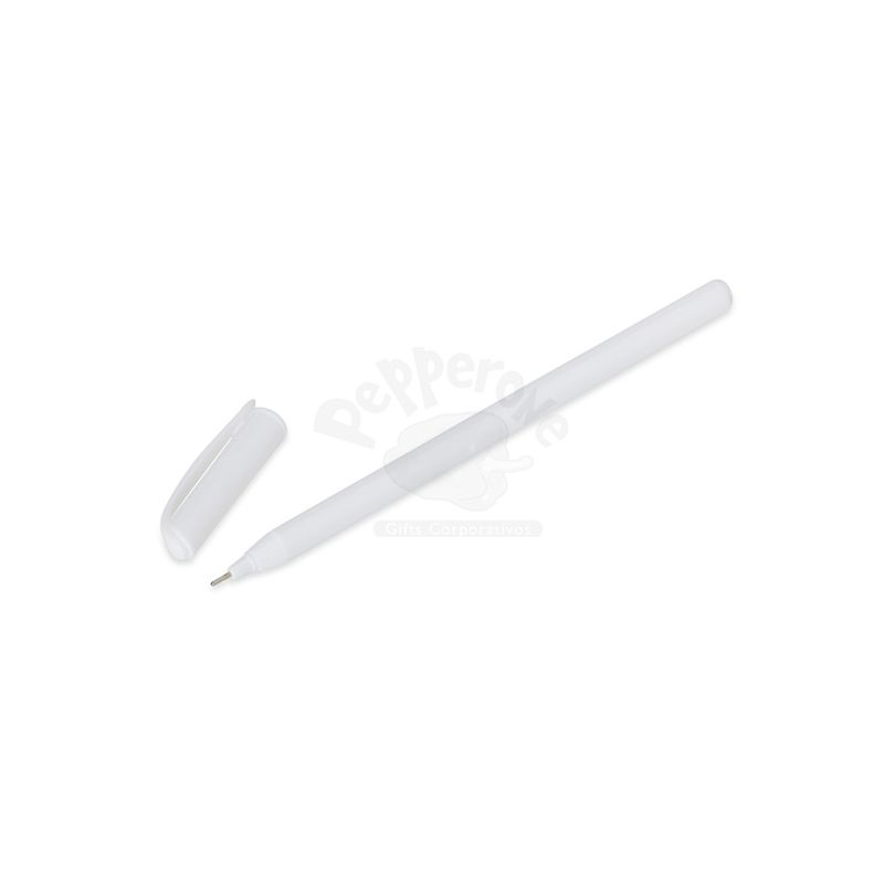 Caneta plástica personalizada com tampa, clip injetado na mesma, esferográfica cor azul de escrita fina. Ideal para divulgar sua empresa em eventos corporativos, brindes personalizados e campanhas.