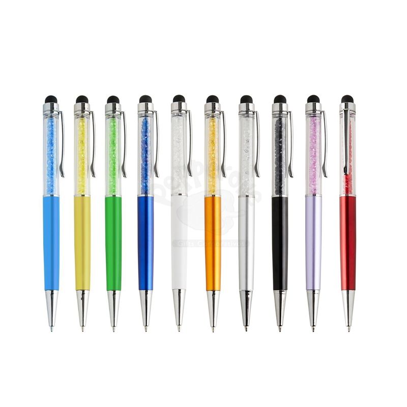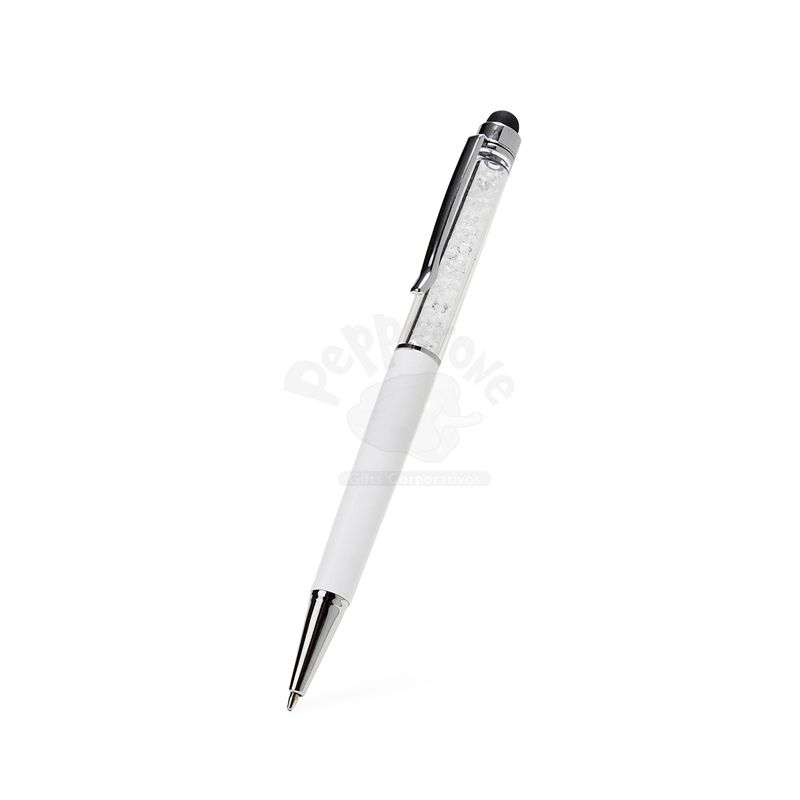 Caneta plástica com touch screen personalizada, caneta com detalhes em cristal um design inovador e elegante possui um acabamento diferenciado, acionamento por giro e carga esferográfica azul 1mm. Ideal para divulgar sua empresa em eventos corporativos, brindes personalizados e campanhas.