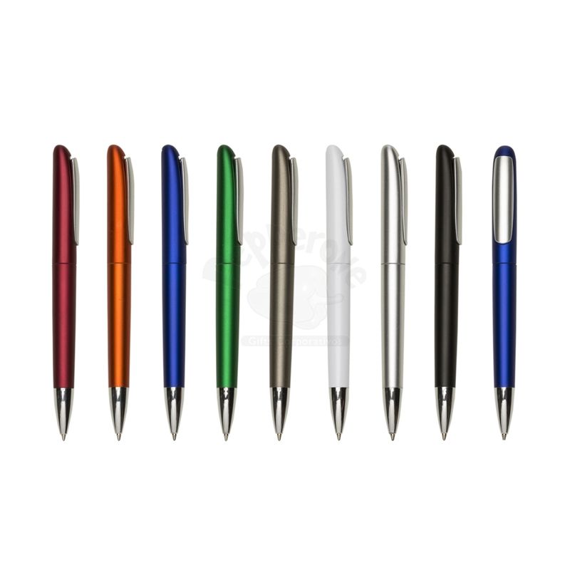 Caneta plástica personalizada com carga esferográfica azul e acionamento por clique no clipe. Ideal para divulgar sua empresa em eventos corporativos, brindes personalizados e campanhas.