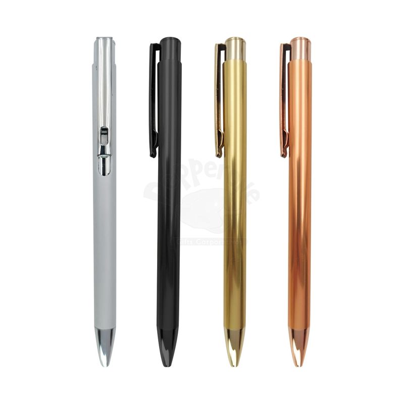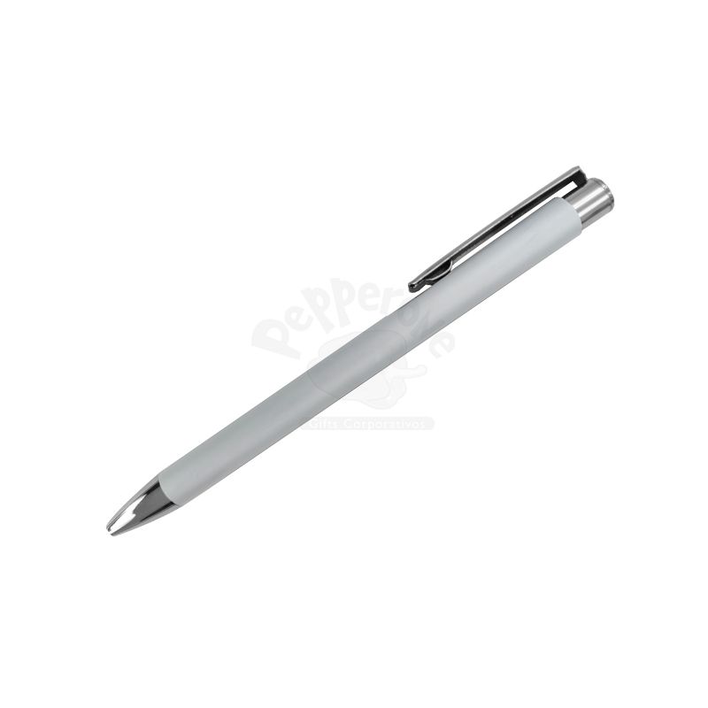Caneta em metal com acabamento brilhante, porém na cor prata acabamento fosco, possui acionamento por clique e esferográfica na cor azul com uma escrita macia e confortável. Ideal para divulgar sua empresa em eventos corporativos, brindes personalizados e campanhas promocionais.