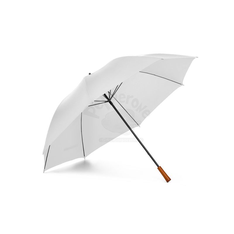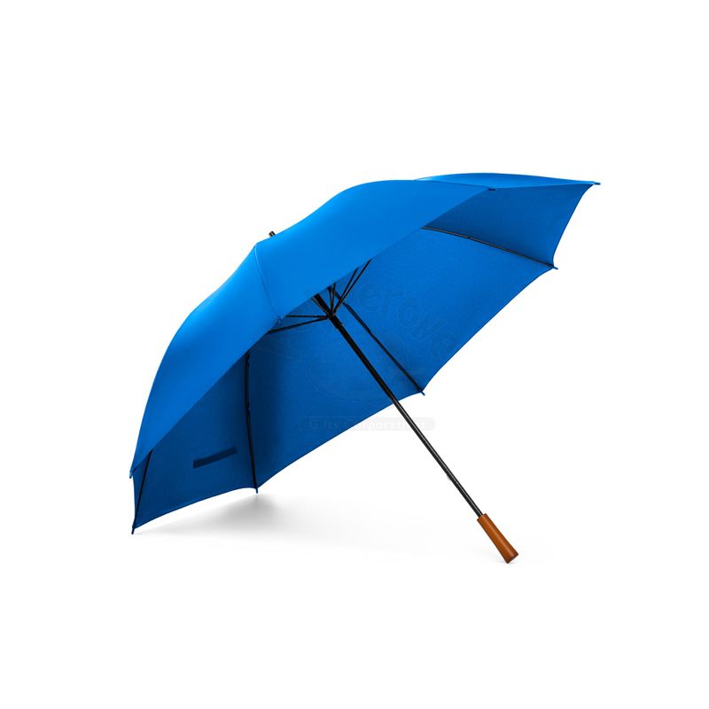 Guarda-chuva personalizado formato grande de portaria em 190T pongee para 3 pessoas. Varetas e haste em fibra de vidro e cabo em madeira. Ideal para divulgar sua empresa em eventos corporativos, brindes personalizados e campanhas promocionais.