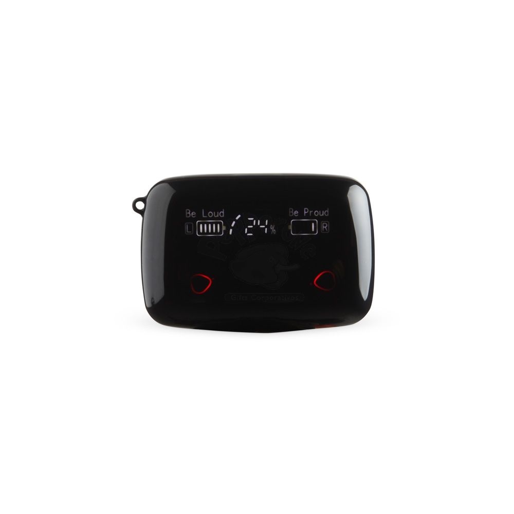 Fone de ouvido bluetooth com comandos touch e case carregador. Com lanterna e display de bateria, o case pode ser utilizado também como um power bank de baixa capacidade para emergências. Material plástico. Acompanham 2 pares de eartips em diferentes tamanhos, lanterna, alça e cabo USB.