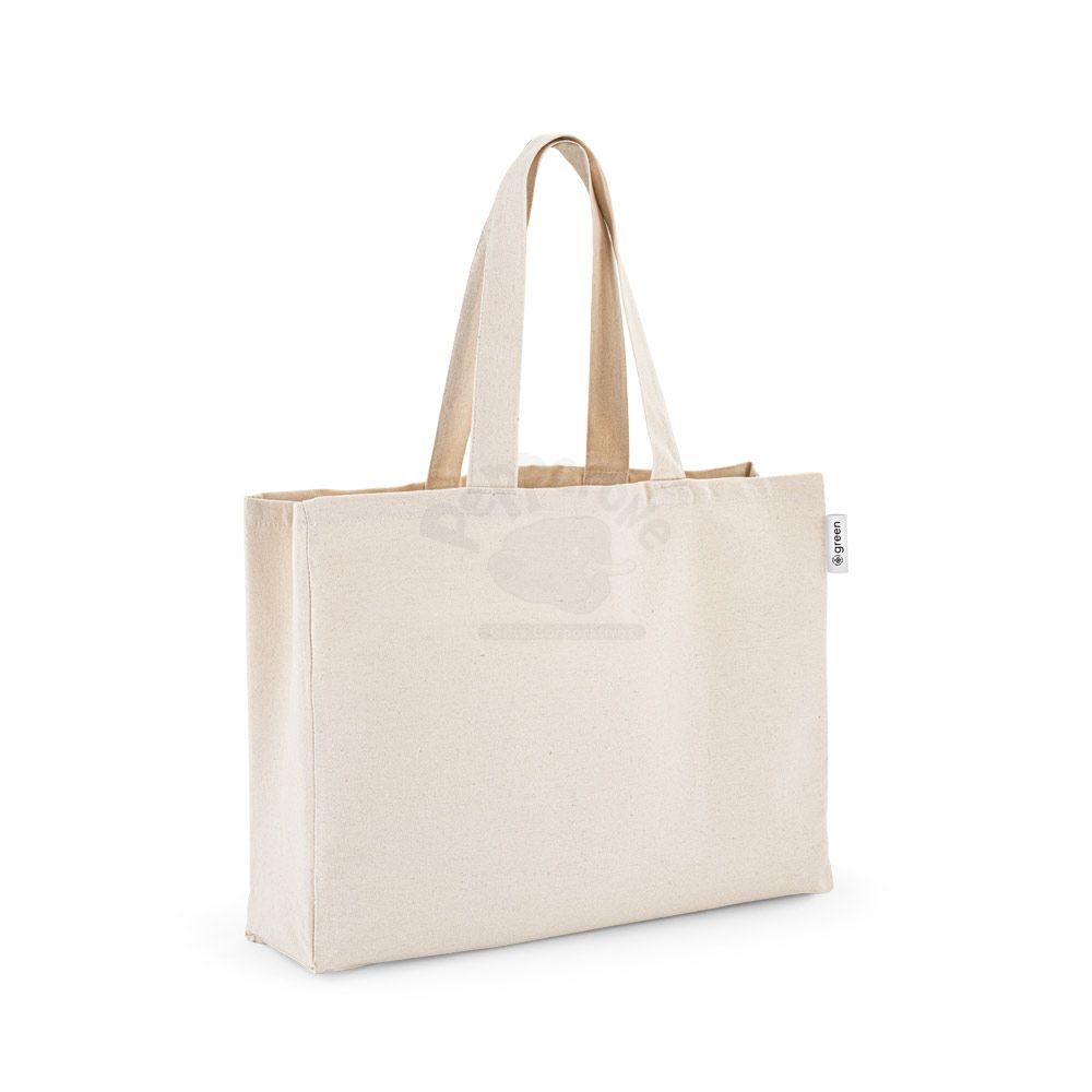 Sacola (220 g/ m²) em algodão e algodão reciclado com alças de 60cm.