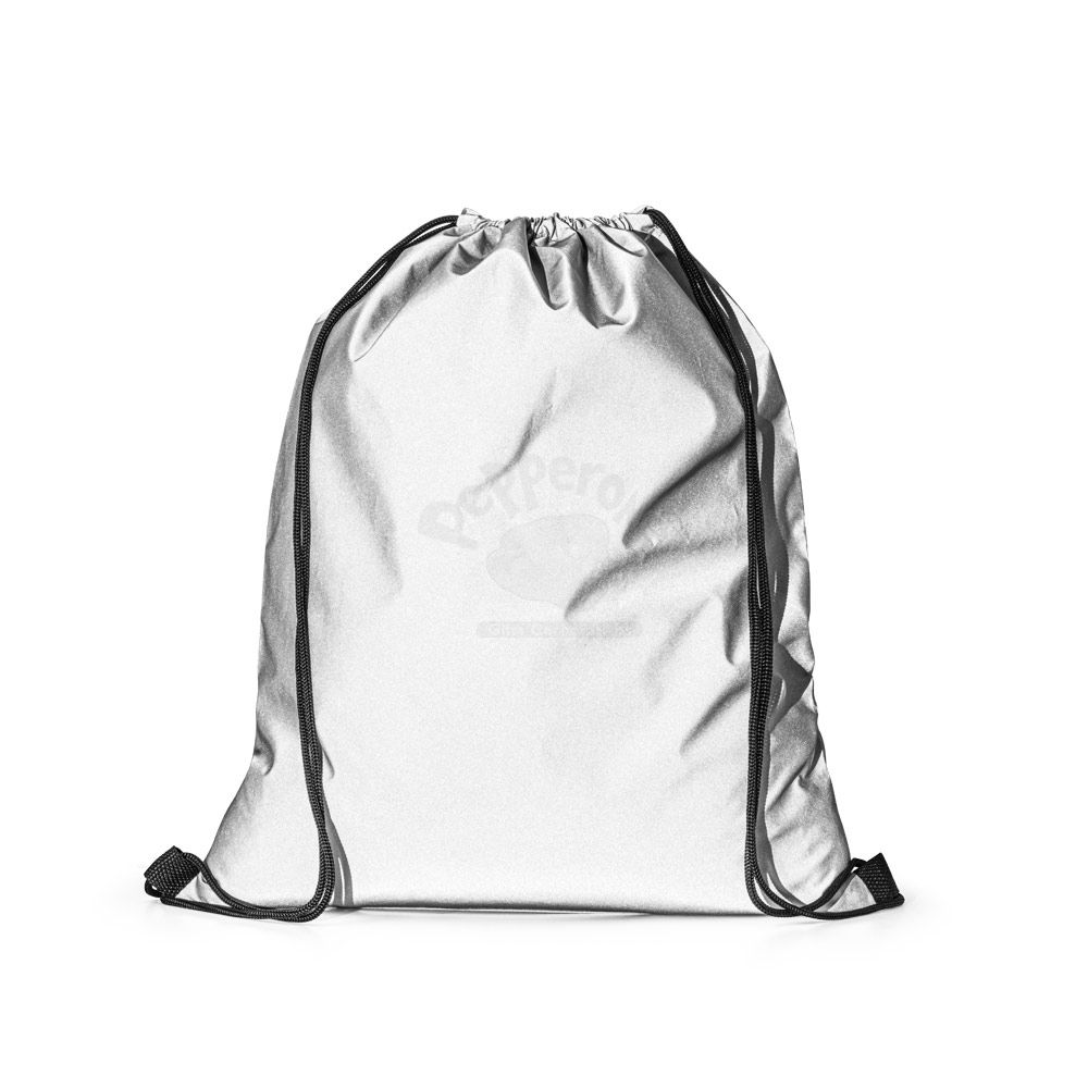 Sacola tipo mochila em poliéster refletivo (200 g/m²).