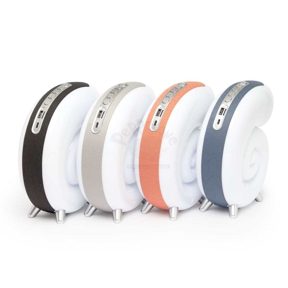 Caixa de som multimídia TWS formato concha com luminária RGB. Qualidade sonora e conectividade total: compatível com bluetooth, rádio FM, cartão TF (MicroSD) e pen drive. Iluminação relaxante e dinâmica, são 7 modos de iluminação RGB com uma vasta gama de movimentos e tonalidades. Sua tecnologia TWS permite sincronizar duas caixas de som em uma, criando uma experiência imersiva compotência excepcional. Fabricada em plástico ABS e PC, seu design exclusivo possui uma faixa de poliéster e pés antideslizantes para maior estabilidade em qualquer superfície. Acompanha cabo USB Tipo-C.