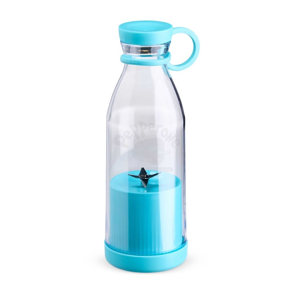 Mini liquidificador portátil com capacidade de 380ml. Contém tampa rosqueável plástica com alça emborrachada para transporte, ventoinha inox 6 lâminas e base plástica com borrachas antiderrapantes. Acompanha cabo USB. Obs. (Para o funcionamento do produto a quantidade total de frutas/água adicionadas não deve exceder 300ml).