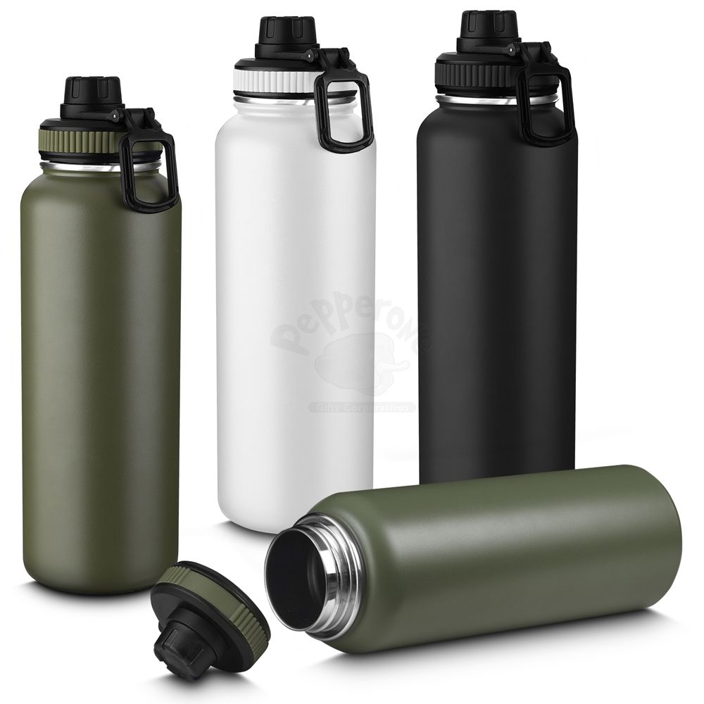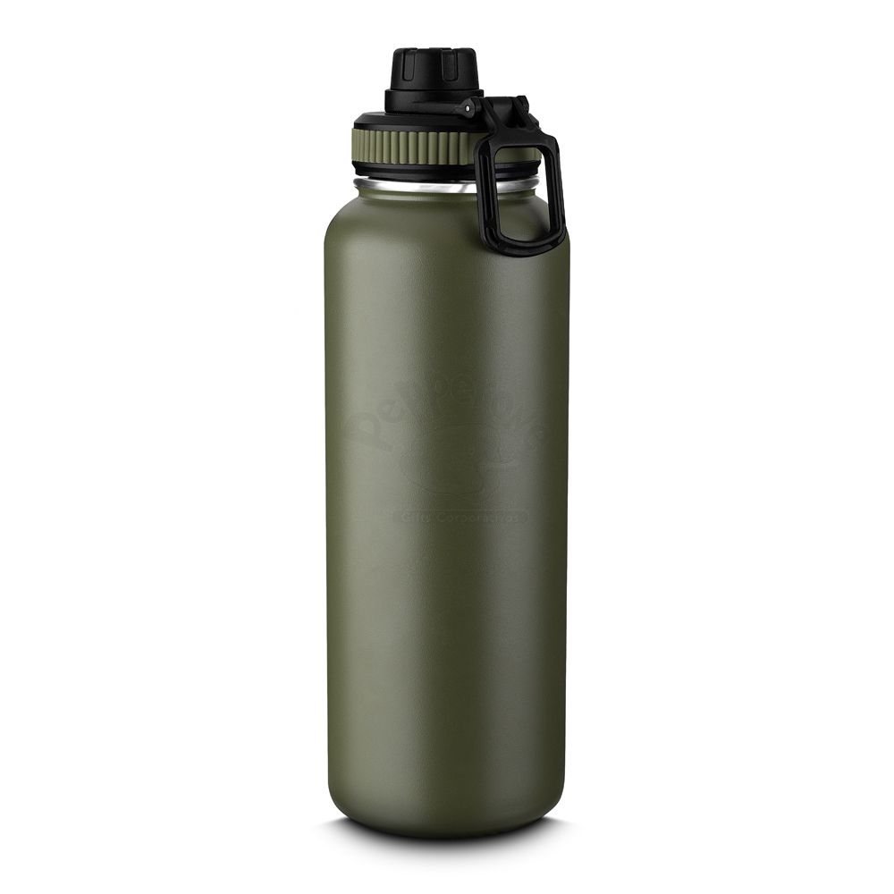 Garrafa térmica em aço inox com parede dupla isolada a vácuo,alça plástica para transporte, bico rosqueável para fácil acesso, com capacidade de 1,2l.