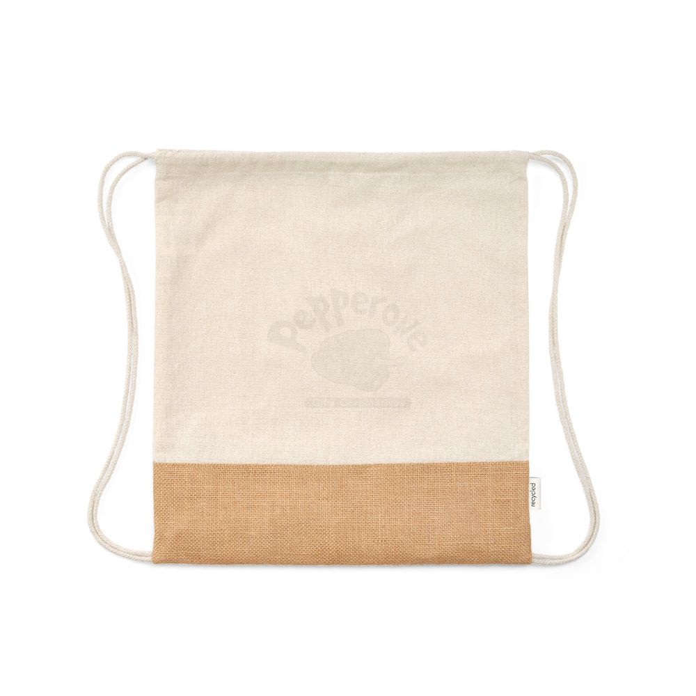 Sacola tipo Mochila em Algodão Reciclado com Base em Juta Personalizado