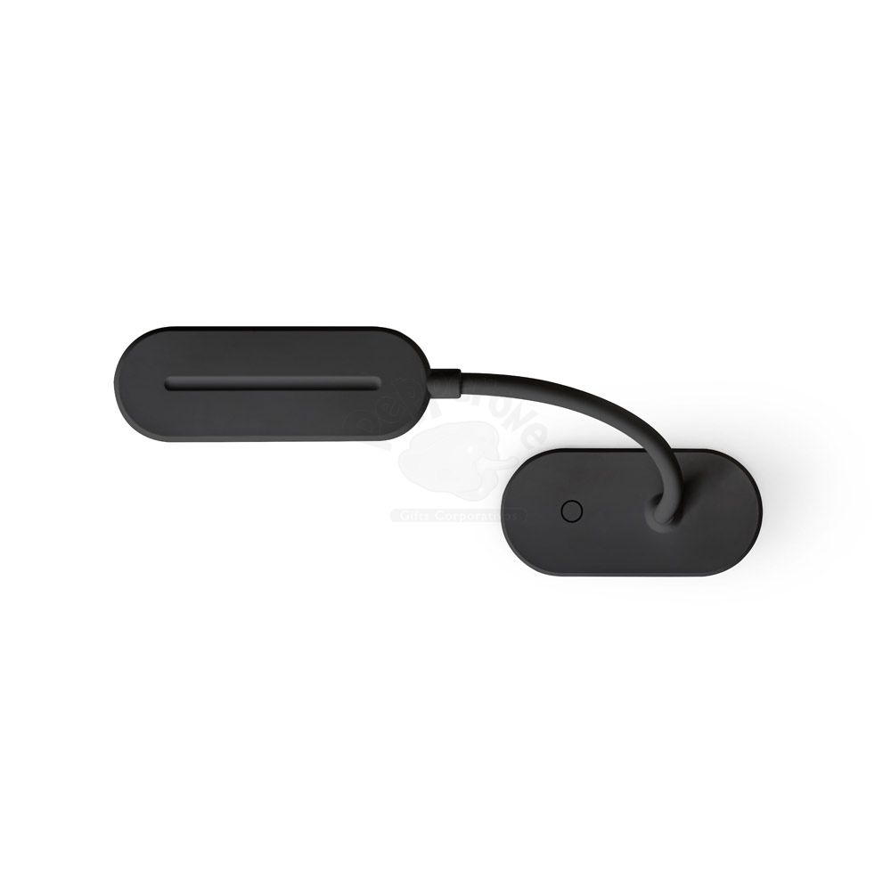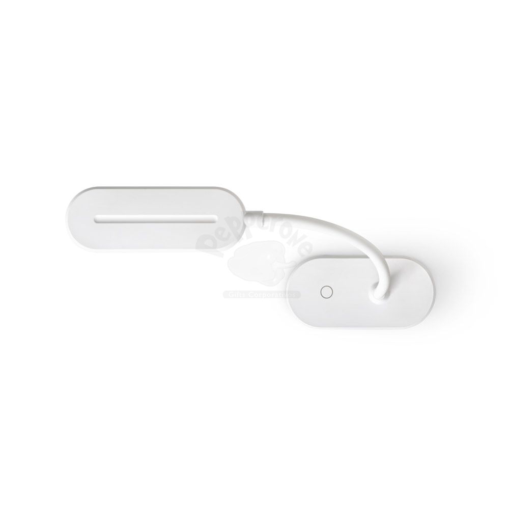 Luminária de mesa portátil em ABS 65% reciclado com 140 lumen e clip para segurar às superfícies. A base é antiderrapante e o tubo é maleável em 360º que permite ajustar com facilidade a direção da luz. Tem uma bateria incorporada de lítio de 1200 mAh. Contém um interruptor para ligar e desligar com 3 níveis de luminosidade: Luz alta (aproximadamente 3 h de utilização), luz média (aproximadamente 7 h de utilização) e luz baixa (aproximadamente 30 h de utilização). Incluso um cabo de carregamento USB-C. Fornecida em caixa presente em papel kraft reciclado.