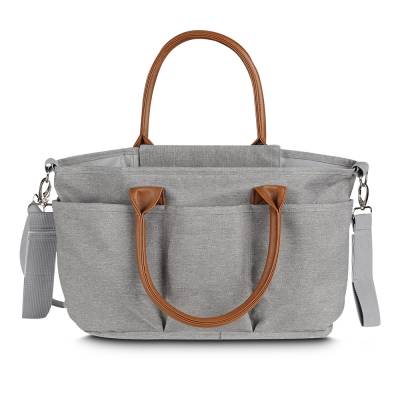 Bolsa funcional em poliéster e couro sintético, compartimento com divisórias, alça de ombro e mão, 4 bolsos laterais, compartimento interno com divisórias.