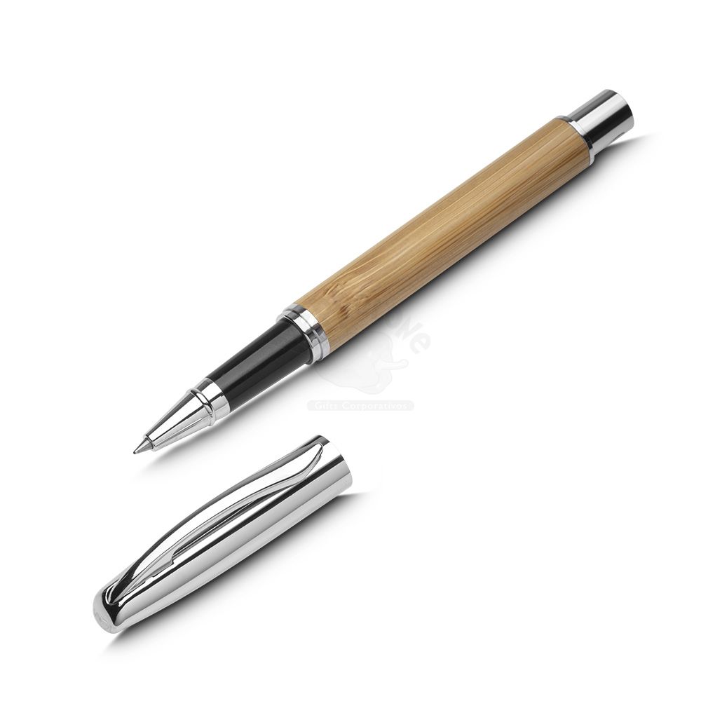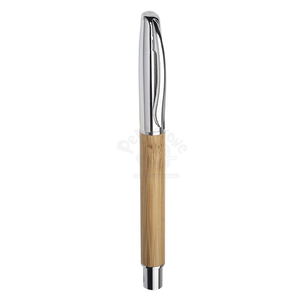 Caneta corpo de bambu com detalhes em metal.